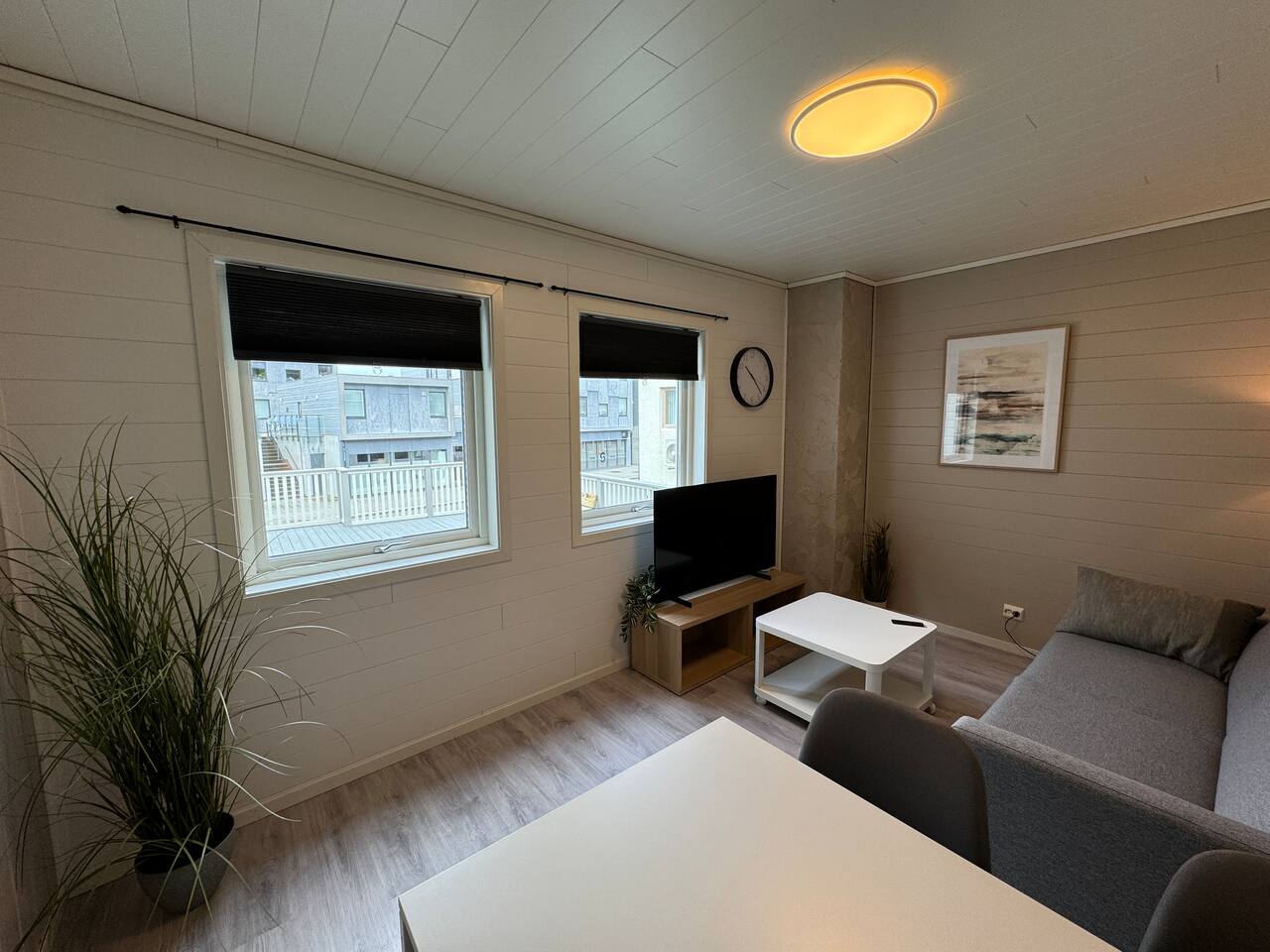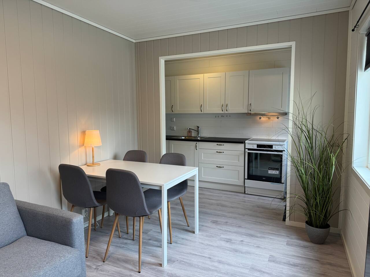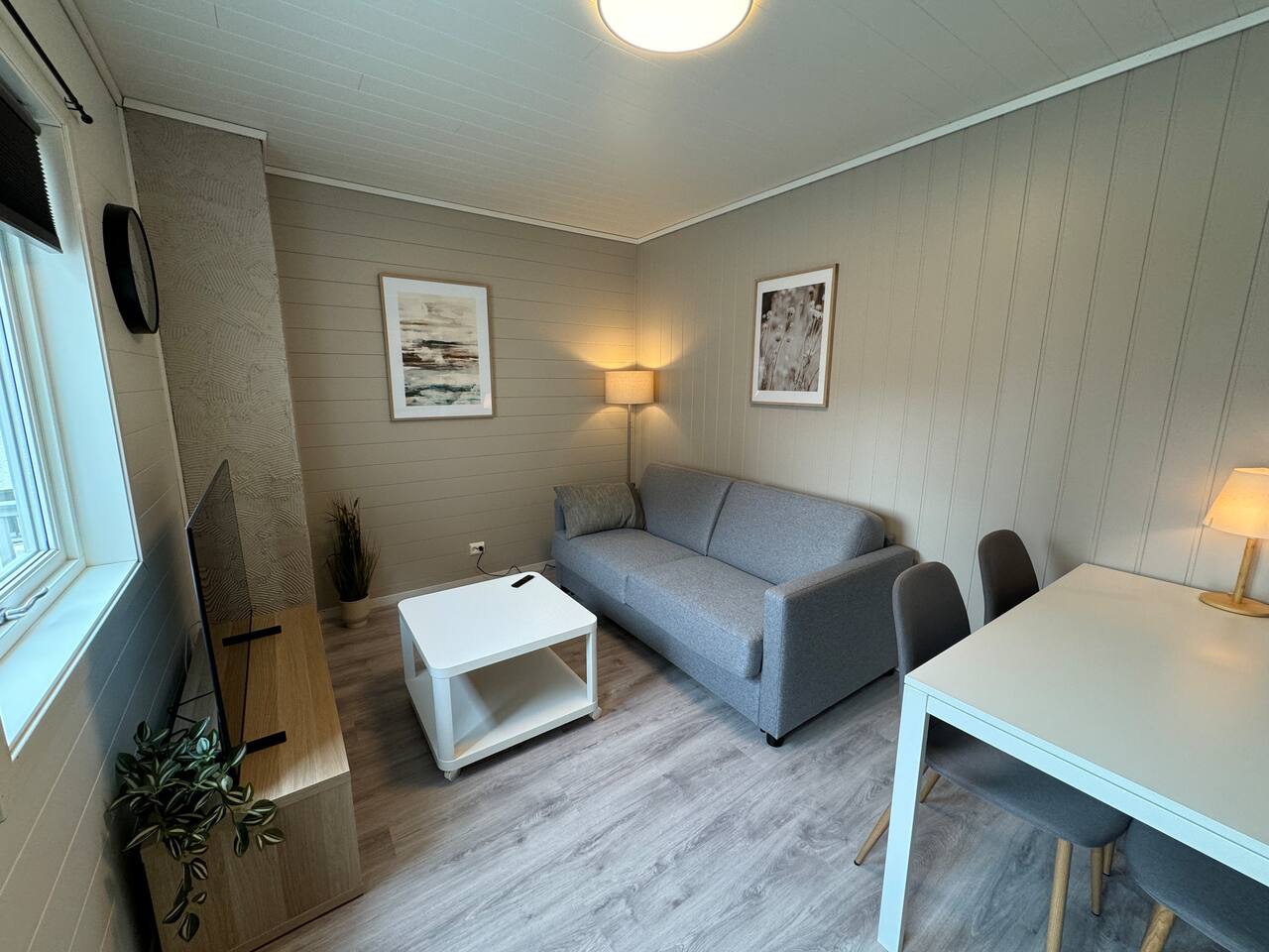 Frisk og fin leilighet med alt det nødvendige. Stue med behagelig sovesofa, Samsung smart TV med Norske, Danske, Tyske og Engelske TV kanaler. Kjøkken med oppvaskmaskin, Nespresso kaffemaskin, vannkoker og "alt" tilbehør du trenger på et kjøkken. På soverommet finner du en behagelig continental seng. Sovesofa i stue. Flisbelagt bad med dusj som også inneholder kombinert Vaskemaskin/tørketrommel.